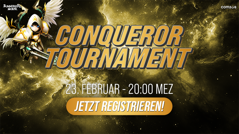 OTHERS Conqueror Tournament - Melde dich jetzt an!Die Registrierung für das kommende Conqueror Tournament ist nun offen! Wenn euer höchster Welt-Arena "Ende-der-Saison"- Rang Conqueror 1-3 ist, dann ist das eure chance gegen andere Spieler des gleichen Ranges anzutreten und tolle Preise zu gewinnen! Die Registrierung startet jetzt und ist offen bis Montag, 23. Februar - 18:00 MEZ. Das Turnier findet am Montag, 23. Februar um 20:00 MEZ statt und wird in einem Bo3/Bo5 format im SWC-Modus abgehalten. Zu gewinnen gibts Kristalle, und zusätzliche Preise, wie zum Beispiel Com2uS goodies und ein Apple iPad. Lust mitzumachen? Dann klicke den Link zum Anmeldeformular und melde dich an! Das Turnier könnt ihr live verfolgen auf ttv/Dookey1337