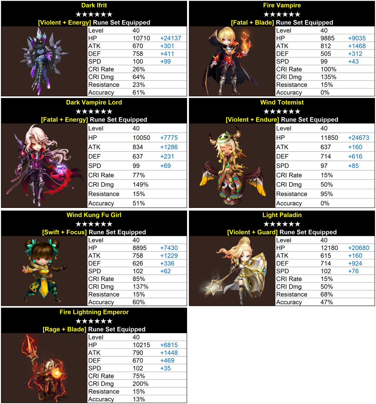 all with [6★ / Lv. 40 / Awakened / MAX skills / Runes equipped]!