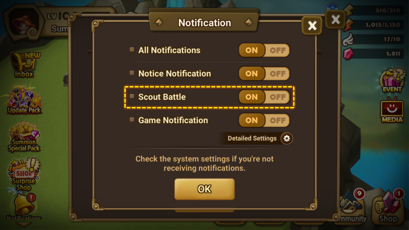 - Il est désormais possible de configurer directement les notifications du Combat d’exploration depuis [Paramètres du jeu > Notifications].