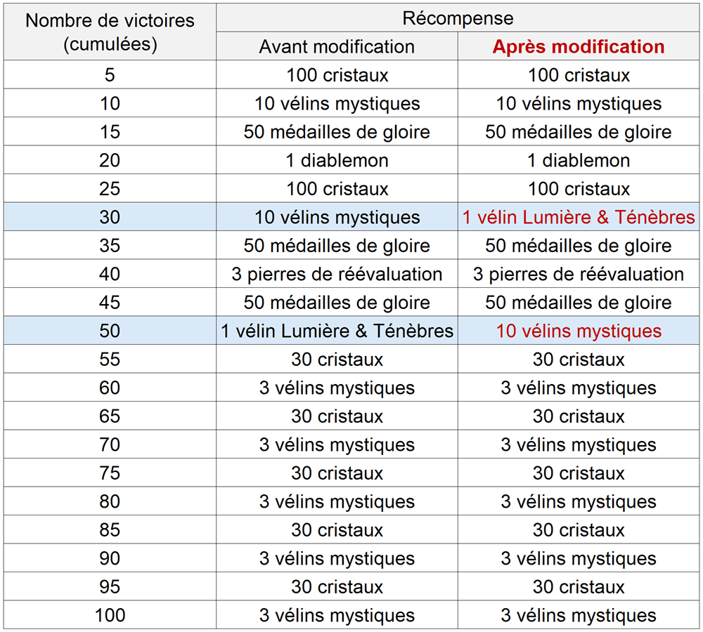 ▶ Certaines sections des récompenses de victoires cumulées du [Combat Défi] ont été ajustées.