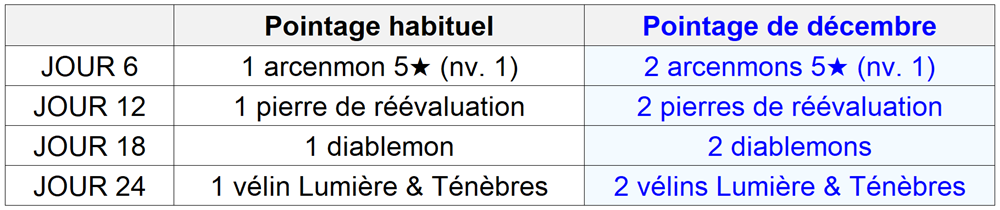 ※ Les récompenses modifiées seront appliquées après la réinitialisation du 1er décembre à 00:00 (selon l’heure de chaque serveur).