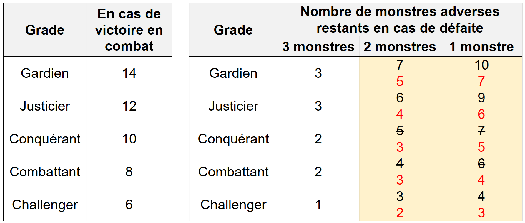 : À partir des grades supérieurs à Justicier ★, les changements de grade s’effectueront comme auparavant, en fonction des points de victoire et du classement.