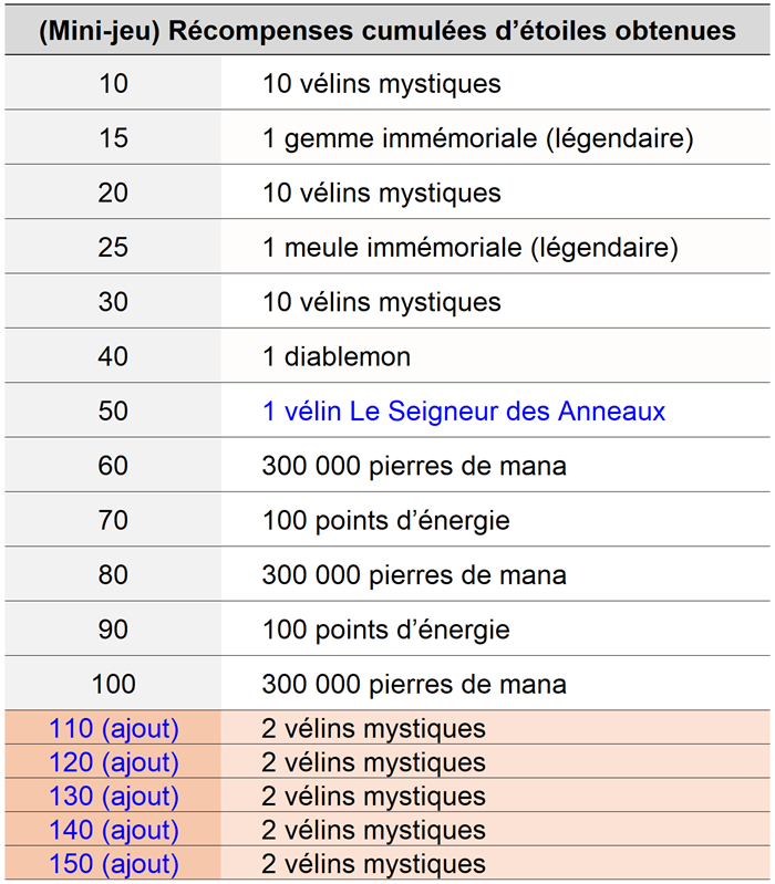 - Des récompenses ont été ajoutées pour la section 110 à 150 de la collection d’étoiles cumulées via le mini-jeu.