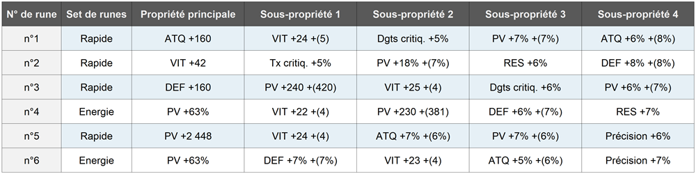 À titre d’exemple, imaginons que les runes de la Reine polaire (Vent) aient été configurées comme suit pour ce deck.