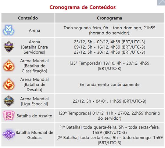 - Entrar na [Batalha Entre Servidores da Arena] 1 vez: 10pts (até 500pts)
