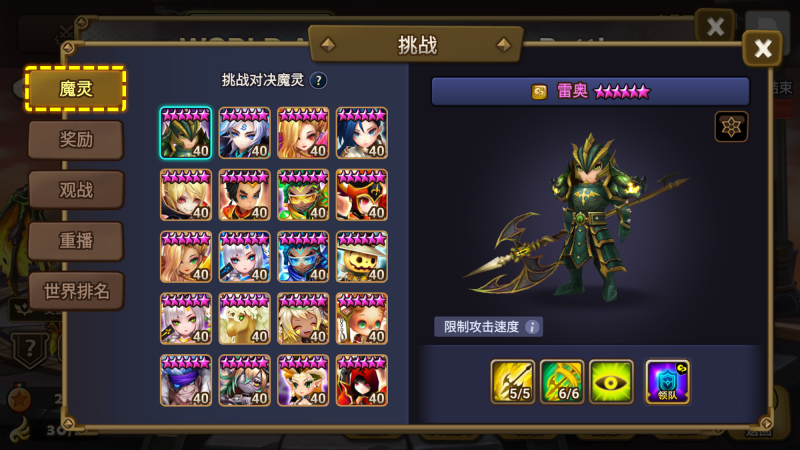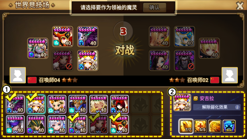 ①魔灵列表:每场战斗开始时,将从40只挑战魔灵中随机分配12只,并使用这些魔灵进行选择/禁用。