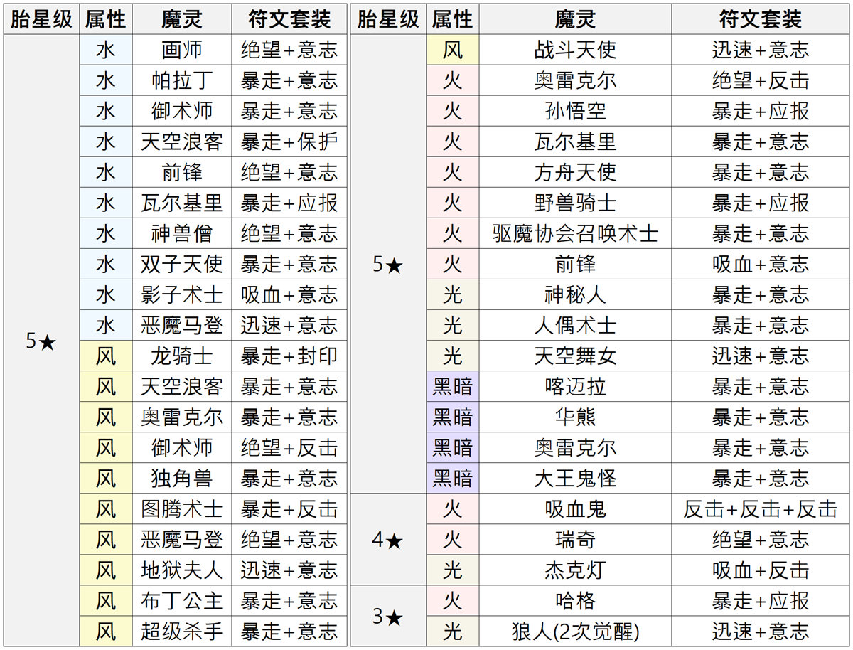 * 该列表可使用至10/31 22:59,并将于11/1 15:00更换为新的魔灵列表。