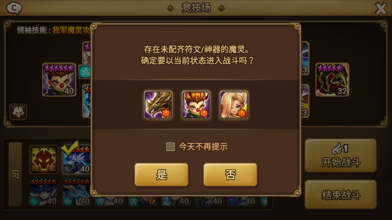 - 战斗开始前的画面中,未装备符文/神器的魔灵将在其小图旁显示未装备状态,以便快速识别未完成装备配置的魔灵。