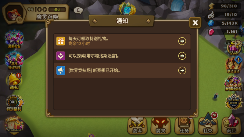- 新增通知图标,用于提示未领取每日奖励、公会战斗进度、竞技场结算等多种信息。